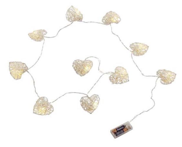 Следва да добавим лампичките. След като ги оформим по цялата повърхност на мрежата, можем да ги фиксираме с помощта на пистолет със горещ силикон, малки телчета или свински опашки.