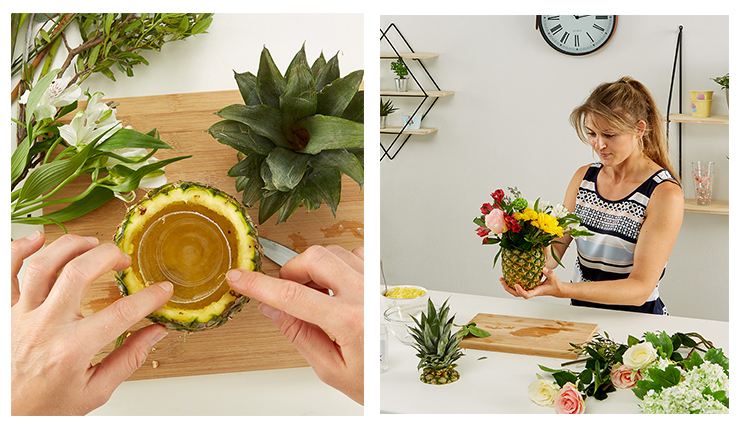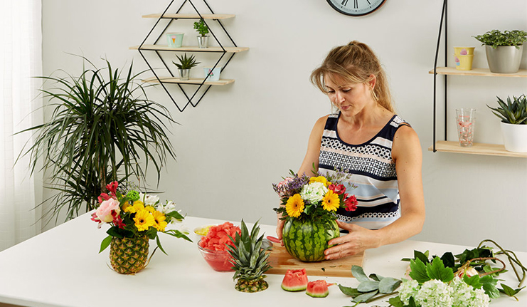 Независимо дали в цветен коктейл, плодова салата или сладоледен десерт, свежите плодове - особено ананасът и динята - са задължителна част от лятото. Освен че са страшно вкусни и здравословни, от обелките им можем да си направим супер яка декоративна ваза, която, напълнена със свежи цветя, се превръща в оригинално, лятно бижу.