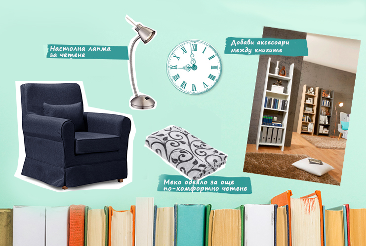 Истинските любители на четенето със сигурност си имат специално кътче, в което остават на саме с любимото си четиво и времето престава да има значение. Перфектен за това кътче е стенния регал, на който да подредите любимите си издания. Под него настанявяте супер комфортно кресло и една настолна лампа и уютният читателкски кът е на лице! Остава само да грабнете чаша чай или кафе и да се откъснете от ежедневието до края на последната страница