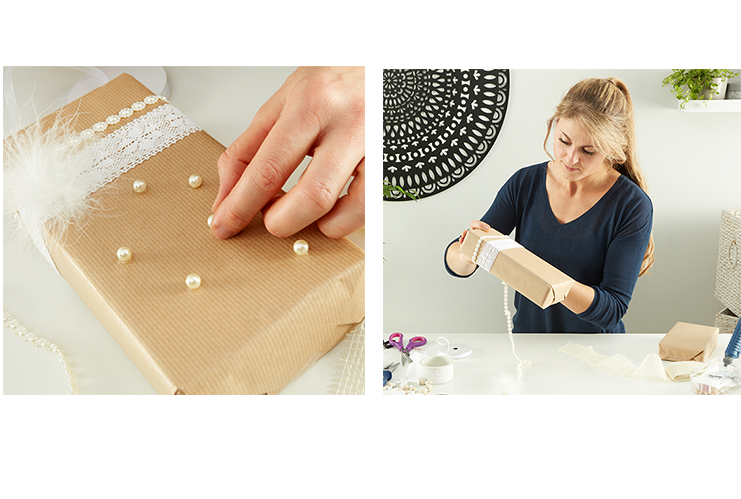 Идея 3: Опаковка с бяла дантела и перли
